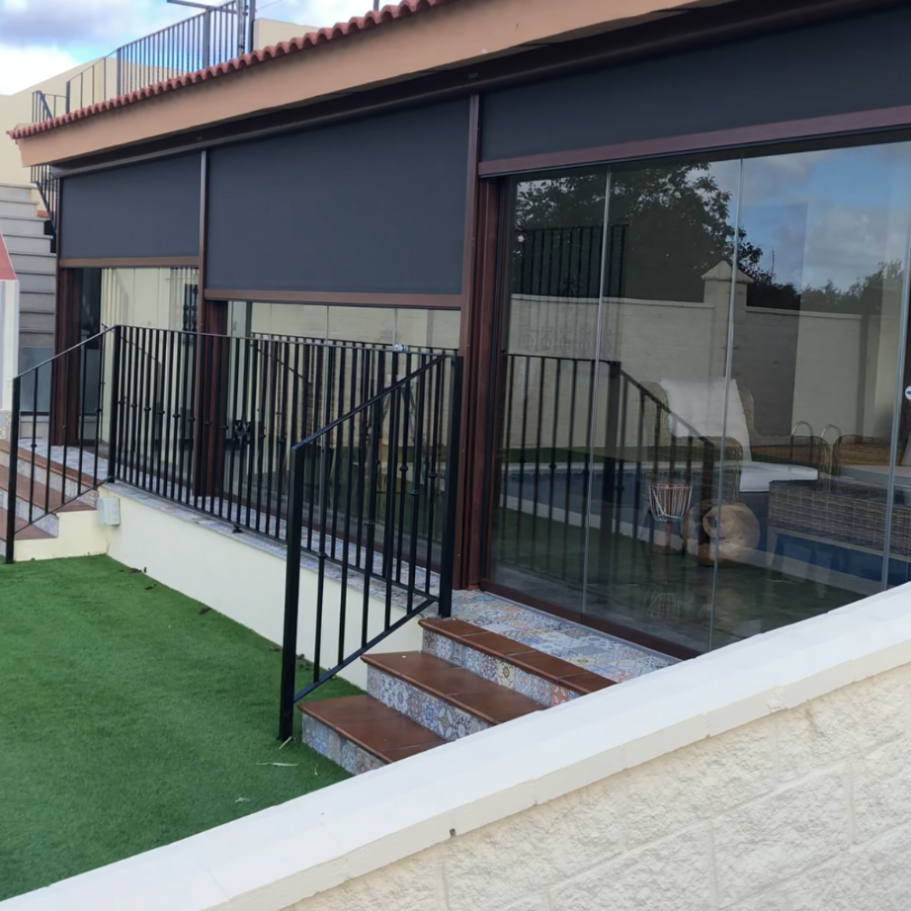 Cortinas de Cristal, Toldos, Wind Screen, Pergola bioclimatica.